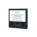 Por la noche con la piel limpia y seca aplicar Night Facial Renewal en rostro, cuello y escote. Dejar actuar entre 3/5 minutos y posteriormente, aplicar Hyaluronic Praxis. Aplicar Proteo Sunscreen SPF50+ por la mañana.